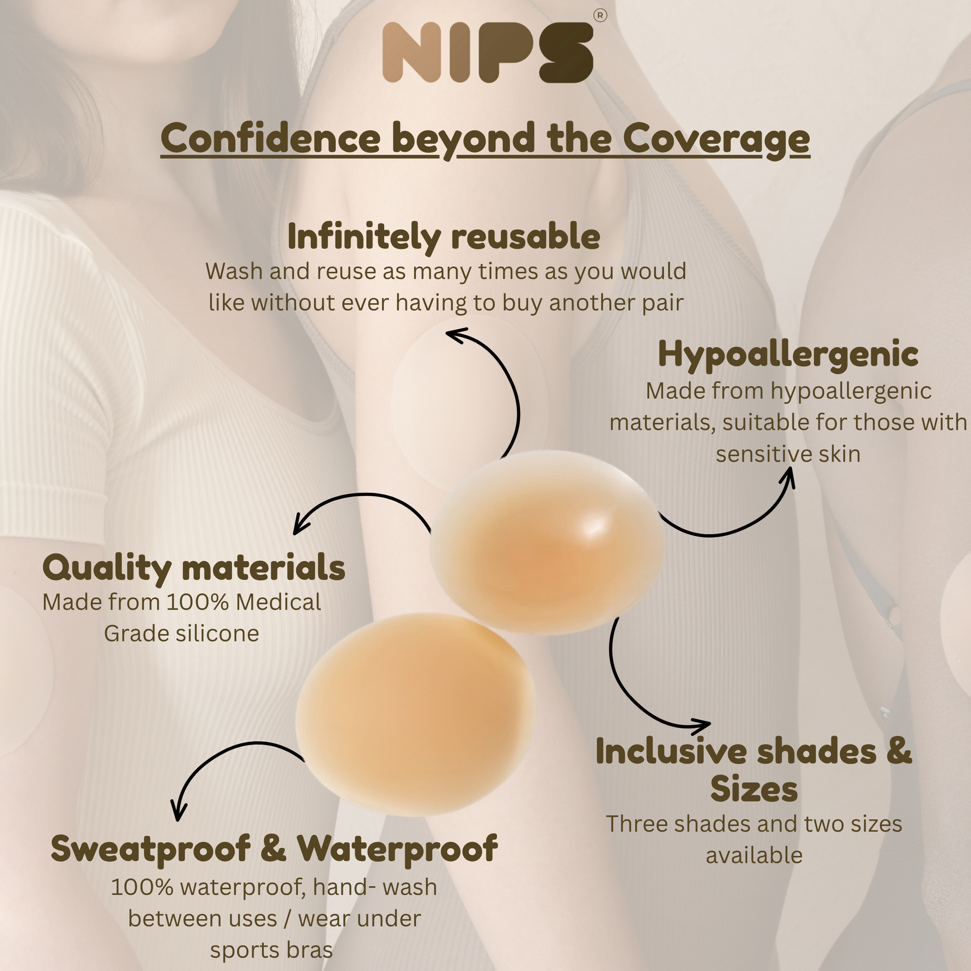 Seamless - NIPS Nipple Covers are invisible under clothing. With tapered edges, NIPS Nipple Pasties offer a seamless design